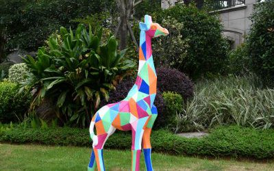 景區(qū)休閑雕塑——玻璃鋼彩繪仿真長(zhǎng)頸鹿動(dòng)物擺件